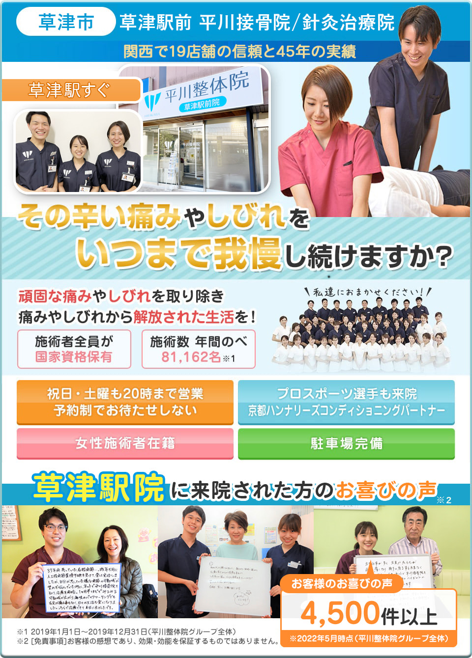 滋賀県草津市 - 草津駅前 平川接骨院/針灸治療院に来院された患者様の声