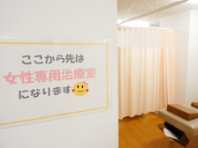 院内は明るく個室になっており女性施術スタッフが常駐しておりますのでお気軽にお越しください。