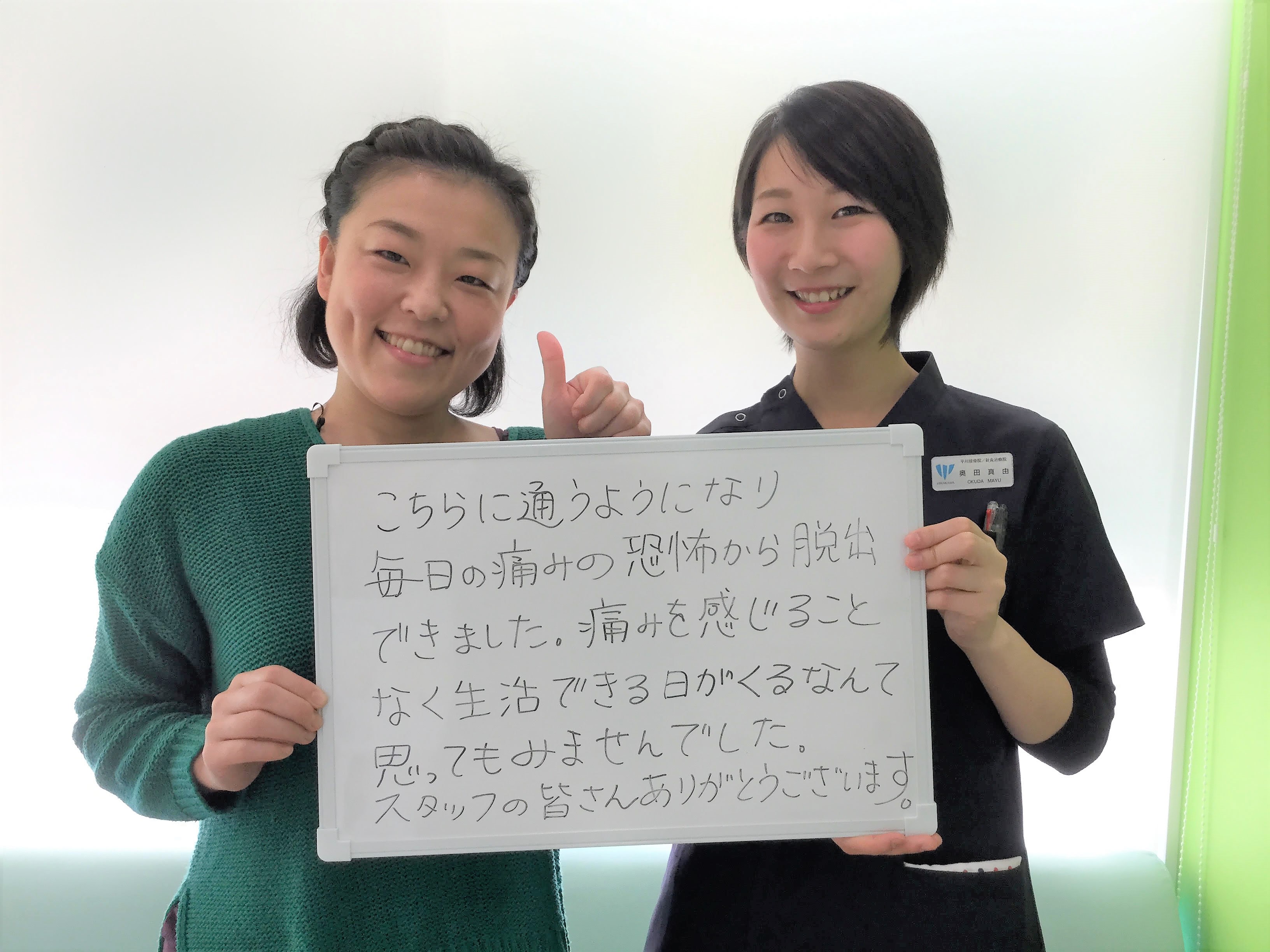 今後も痛みがない状態が続くようにスタッフ一同しっかり施術させていただきます!